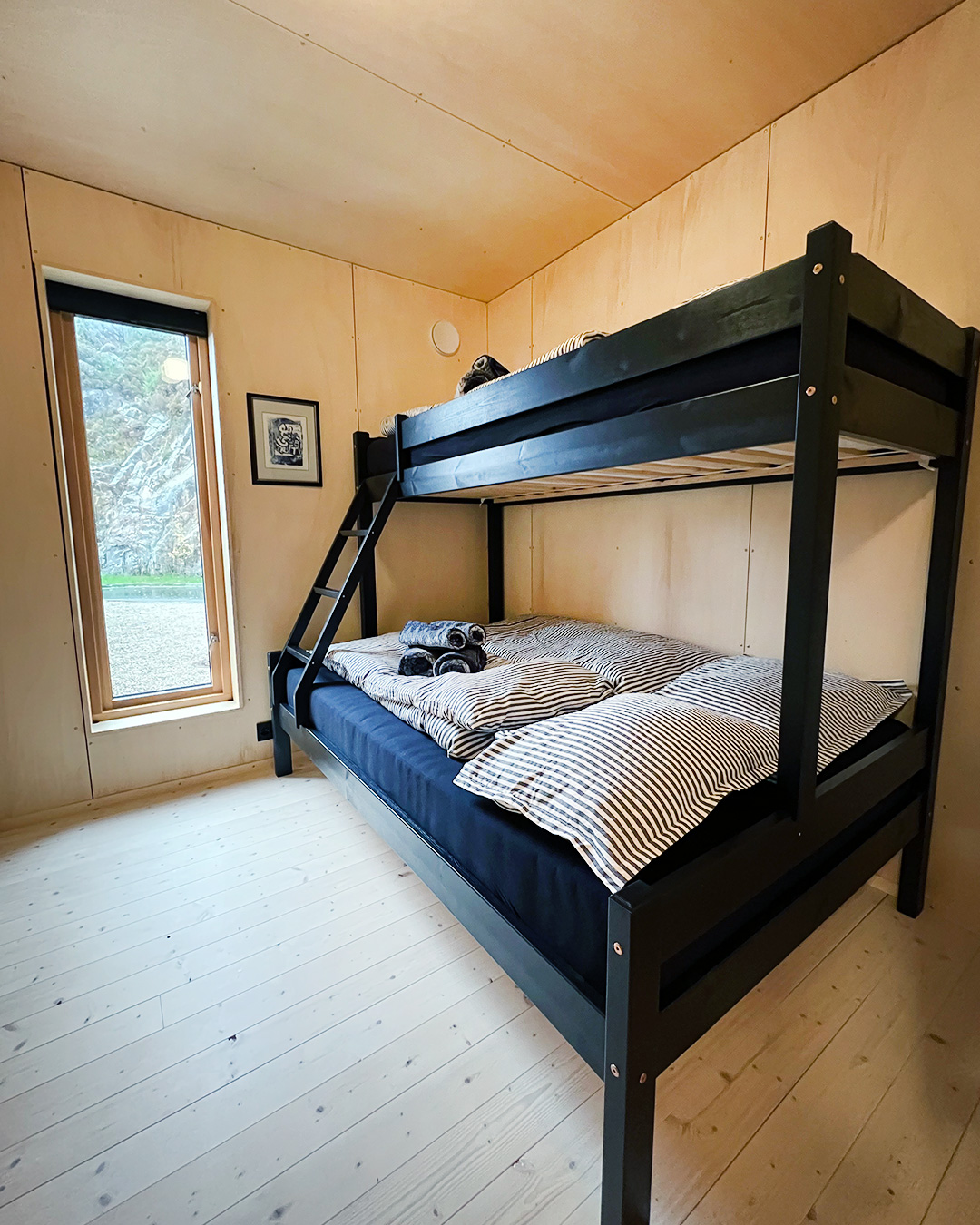 Soverom 1. etasje, familiekøye med gode madrasser, 120 cm / 90 cm